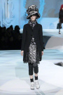 The models wore pilgrim shoes with giant shiny buckles,and large furry hats. It was magical and poetic. A cacophony of textures and colours, Jacobs evoked a strange sort of folkloristic glamour. There was a continuation of the past two season’ fascination with contrasting fabrications. Wool stoles were buttoned over wool coats worn on top of patchwork skirts above cropped pants. Prints ranged from oversize paisleys to floral pencil drawings, and holographic appliqués dripped off dresses. Volumes were turned up to, including padded hips.