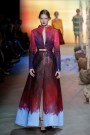 Just as in his latest collection he presented a lot of pleated designs, like a black and a red pleated dress combined with golden belts and bracelets. Other eye-catching details were ruffles and frayed ends with long threads hanging at the bottom of some dresses.