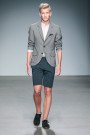 Fresh faced male models walked the runway at Mevan Kaluarachchi’s show this week. They sported the young Sri Lanka born designer’s perfectly tailored collection, which contained just about every piece a man needs during summer time. Like sand colored shorts, denim shorts and even light blue colored shiny shorts. Like slouchy striped pants and narrow pleated pants. Like (slightly transparent) white Tees and longsleeves. Like a cardigan with a baseball fit and a sportive checked jacket with leather details. Like short leather jackets, denim jumpsuits and shiny hooded jackets. Like duo colored sleeveless tops and white shirts. Like a decent leather bag, a cool pair of sunglasses and some casual sandals, all given the Mevan twist.