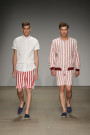 Melissa started with six sportswear inspired menswear outfits. She showed sporty shorts with visible pockets, tank tops in different variations (linen, striped and shiny) and two chic jackets. A small but well tailored selection. We would love to see more!