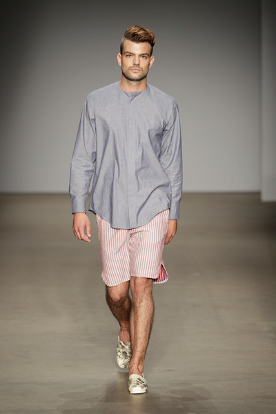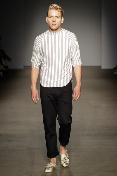 Melissa Siegrist’s boys were all ready to hop on the baseball field, or at least look pretty on the sideline. They sported striped and uni colored shorts, baseball jackets and shirts worn underneath T-shirts. Everything had a fifties vintage touch, inspired by legends like Joe DiMaggio and Babe Ruth. Designs, made out of linen and cotton looked effortless and comfortable. Nothing too crazy, never trying too hard; this was just a beautifully made, perfectly fitting menswear collection. Plus, the live trumpet player and DJ made Melissa’s forth AFW show into a fun, inspirational Monday afternoon event.