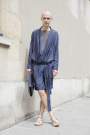 Lots of men will never get used to it and some women can’t stand the sight of it but the fact remains that sandals for men are a definite summer trend. And now that the temperature is rising those sunny sandals are popping up everywhere. And don’t think there’s no room for creativity with the men’s sandal; on the catwalk as well as on the streets we spotted lots of different designs. Like the red and beige ones, worn with socks at Louis Vuitton. Or the zigzag printed ones at Missoni. And let’s not forget the purple pair at Dsquared. The only two basic parts of a men’s sandal are: leather and straps, the rest is up to the designer’s imagination. Wear them with shorts, trousers or a wrap dress (like the guy in our streetstyle pics) and just (let your feet) breathe!