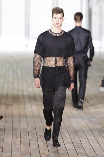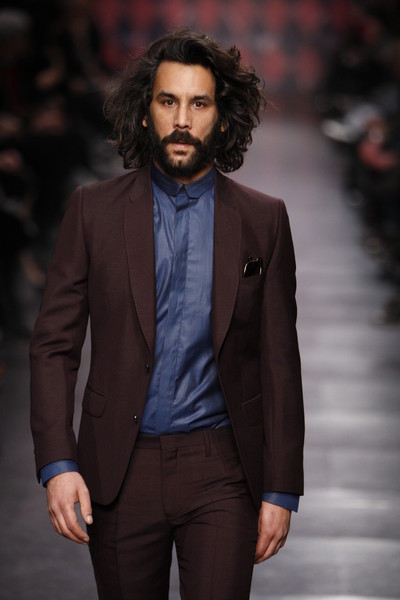 Another trend we saw at the menswear collections were the tucked up sleeves. The boys at the fashion shows of Costume National, Vivienne Westwood, Etro, Raf Simons Lanvin and John Richmond had it all. We spotted some short sleeves as well at the Neil Barrett and the Cerrutti show.
