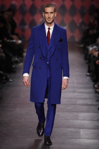 Items that really caught our eye were a black poncho, a long cobalt blue overcoat and a turquoise colored suit. The show ended with some slick black dinner jackets.