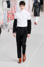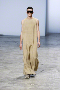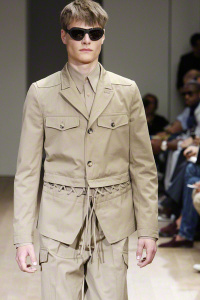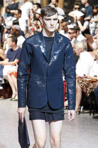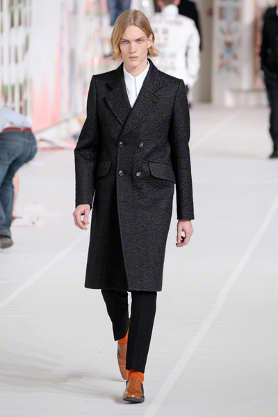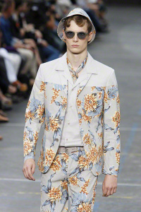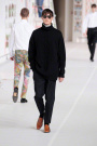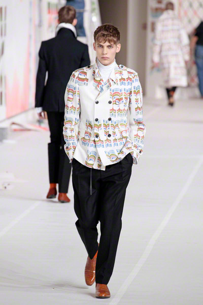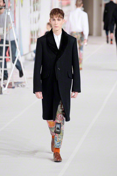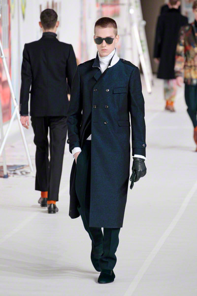 At least there is one designer who tries to mix humor and menswear to an elegant collection. Dries van Noten felt like doing something that would make people smile, and so he did. He mixed psychedelic prints with his signature menswear that had a military edge. The military coats, stovepipe trousers and sweaters came along well with the naive prints. The skinny jeans and shoes looked cool.