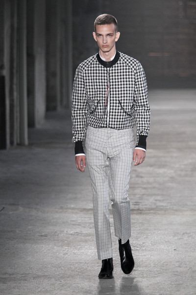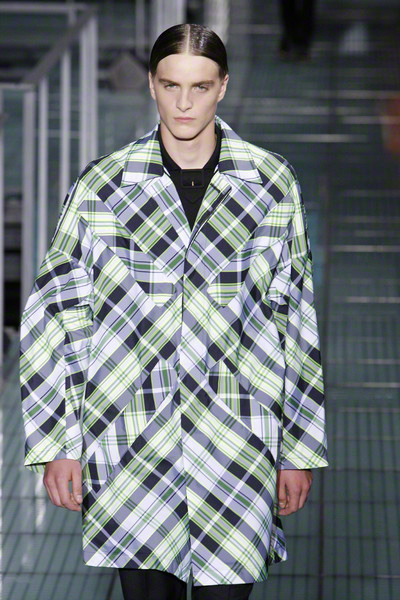Checks serve the feel for pattern and print. From classic tartans and plaids at Gaultier, intricate kinetic patchwork at Raf Simons to slim silhouettes in black and white 60s mod checks at Gucci. Moncler Gamme Blue speeds up towards a more racy and sporty flow.