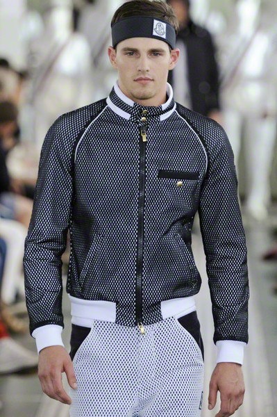 With the Olympics starting next year in London, it seems a lot of designers are finding inspiration in sportswear. From the tongue in cheek-golfwear from Prada to the fencing-game at Moncler Gamme Bleu. In between you’ll find references to tennis, swimwear, running and sailing. You’ll see it in the color white, the shirts, shorts, the blue and red stripes, the shoes and pants.