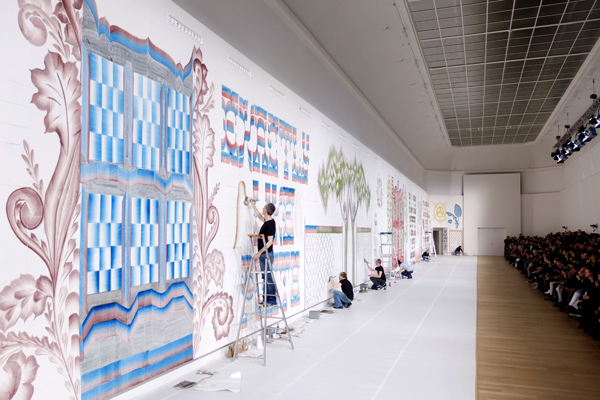Also compliments to Dutch artists Gijs Frieling and Job Wouters who realized a mural as a backdrop during the show, featuring the same architectural and typographic motifs.