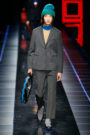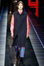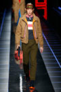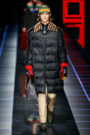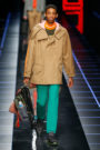 To convey a sense of lightness and practicality, Fendi worked with nylon for puffers, trousers and jackets. The dark pieces were almost always luxed-up with contrasting pops of colored fur.