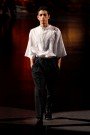 Today Ennio Capase almost sent out a completely black colored collection. But, proving the power of black in fashion, there was more than enough to look at. Capase paired tough with chic by mixing leather pants with woolen coats and by giving other coats extra biker details, like multiple zippers and strong leather collars and panels. Extremely tailored jackets and classic hats added to that contrast. Touches of white and blue cheered up the collection, but it didn’t change the long haired models’ bad-ass mood. They were perfectly dressed rock ’n rollers on a mission.