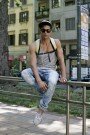 So the model looked tanned, handsome, in great shape and were dressed in tight trousers and unbuttoned shirts. The once ultra ultra low DSquared-jeans appeared with high waist and a flare – so that means you will have to get rid of that belly, boys. Jeans were mixed with (shiny) shirts, blue was the main color besides bright colors like red and green.