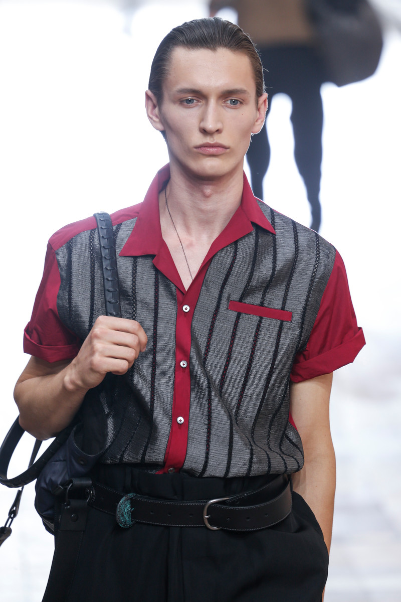 The cuban collar shirt never seems to fade away from the mens wardrobe and isn’t a newcomer. It’s probably something that your grandfather wore in the 1950s, the time the shirt made its big debut on the fashion stage. It’s the perfect light and breezy element in every men’s summer wardrobe, making it a gentleman’s must-have. Like a hot summer night in vice city. It oozes old-school charm and class. What sets them apart from the rest? They have an open, lapel-like collar, short-sleeved, buttoned down and have a straight cut hem. The collections from Louis Vuitton, Dries Van Noten and Raf Simons all showed Cuban-collar shirts, executed with geometric prints or summery pastels. Yes, you can go terribly (but really terribly) wrong with this one (think Hawaiian or retro bowling style or Tony Montana in Scarface), but combined with baggy trousers (huge trend!), neckerchiefs (yep, trend!) and a pair of chinos and you’re done. This is a first for you? Maybe it’s best to opt for a slim-fitting version rather than a traditional boxy cuts to start of with. Consider rolling your shirtsleeves for an added touch of 50s nostalgia. Though, the main decision you have to make is will you wear the collar under or over your lapels. The designers will help you decide how to integrate a touch of vintage 1950s style to your warm-weather look.