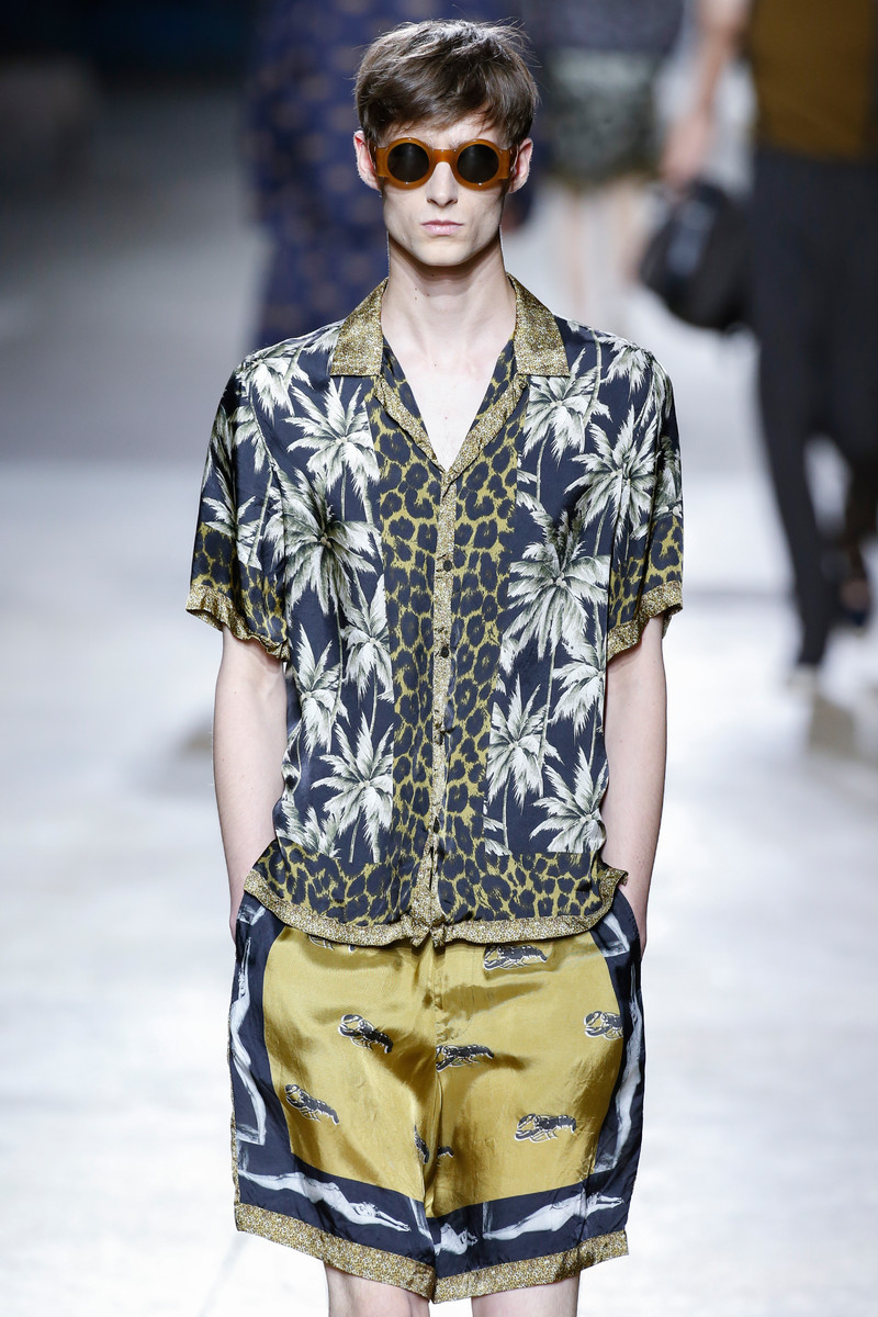 A brand new The Jungle Book movie was released this spring. Reason for fashion brand Kenzo to launch a special collection dedicated to the Disney movie. But it wasn’t just the designers at Kenzo who figured jungle would be an appropriate spring/summer theme. Dolce & Gabbana, Gucci, Louis Vuitton and Missoni among others all turned their catwalks into a wild nature celebration. Each in their own way of-course. At Balmain, Philip Lim and Kenzo the dresscode was safari chic all the way, with kaki colored overalls as far as our eyes could reach. Antionio Marras gave his camouflage attire a tropical touch and at Missoni the safari jacket was given the ultimate holiday touch. Burberry, Coach and Saint Laurent hinted to the theme more subtly, presenting some animal printed statement pieces. Then there were the models at Dolce & Gabbana, Louis Vuitton, Hermes and Gucci rocking the brands’ full on flora and fauna suits. Junya Watanabe went all the way with it’s male models wearing big braided wigs, safari hats, patchwork T-shirts, bright printed scarves with beads and fringes, handmade jewellery and wooden accessories, creating a true Junya jungle. Fashion darling Dries van Noten probably interpreted the trend in the chicest way, pairing tropical palmtree printed shorts with leopard sweaters; this summer’s bare necessities. Welcome to the jungle.