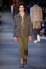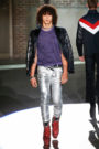 As the show progressed, Owens capped his pyramid-shaped pants with tiny, taut bomber jackets and leather blousons that stopped at the ribcage.