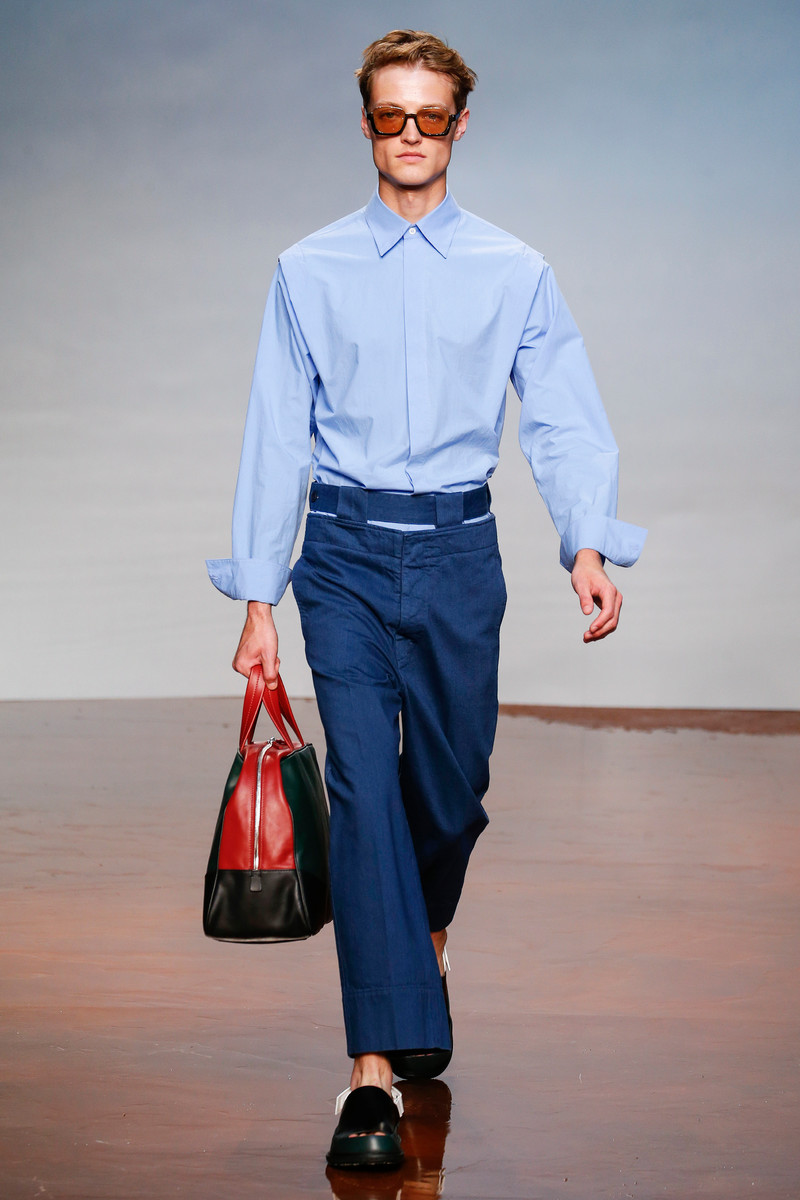 Three’s a trend: enter the modern journeymen. The idea that traveling is all about comfort and ease, no, we’re not taking it anymore. You have to look good while exploring the world, and that’s even possible in a suit. And how obvious can it be with Prada shirts covered with hand-drawn symbols of world travels. You better book that ticket fast. Also seen at: Missoni, Marni.