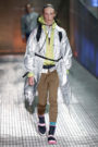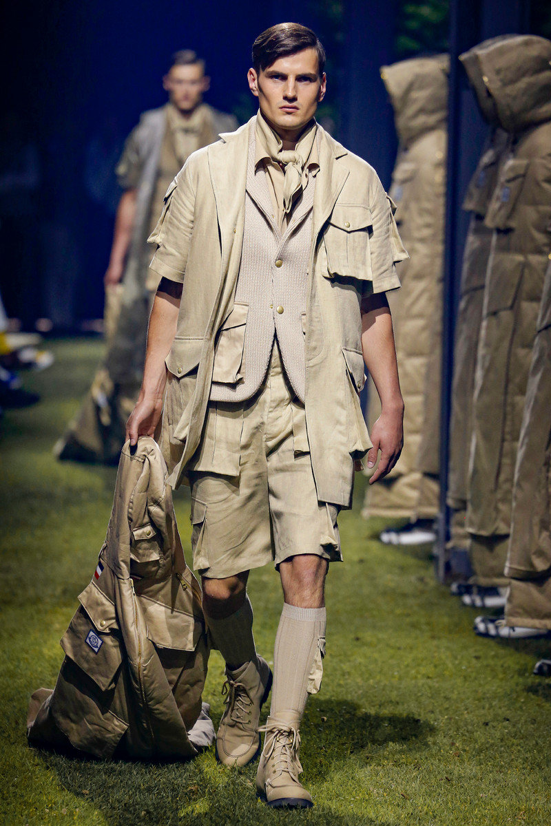 Wether you go on a hiking trip, a walking tour, on safari or exploring a city, make you sure you look as fine as our Milanese men right here. The outdoor trend is presumably started by Versace. You no longer have to be ashamed wearing nylon zip-ups, backpacks, athletic leggings and a good ‘crocodile hunter’ hat. That’s the way to go. Also seen at: Moncler, Prada.