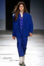Owens also added shiny embroideries with radiant lines, like depictions of the Sacred Heart, to loose black robes and sculpted tuxedo jackets. It’s a descriptor coming up more frequently as the Paris season picks up steam. Owens’ priestly take on black-tie was certainly divine.