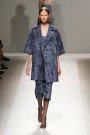 The shoulder proved the major focus, anchoring a lean silhouette that projected power-woman determination. The men’s wear reflected similar polished and tailored panache, while projecting a slightly gentler attitude.