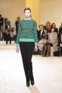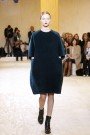 But this collection was more about fabric development, this fall with a deliberately weighty, homespun feel for daywear, often in bold colorslike dark pink, mustard, pale yellow, orange and deep red. It looked inviting in thick tweed wools but a bit itchy on mohairs. The look became ladylike thanks to Sixties retro hairdo’s. The coats were minimalist and skirts were above the knee, with off-white stockings and high heels. Some of the other looks included jersey tunics and blousons — like sweatshirts – and very simple dresses in black-tinted white silk overlaid with black lace.