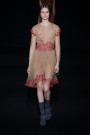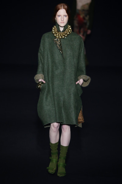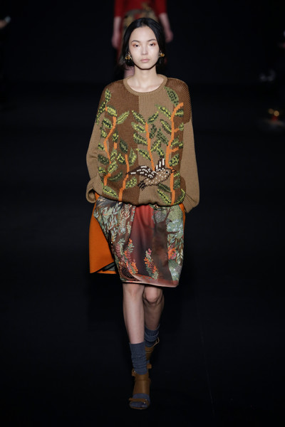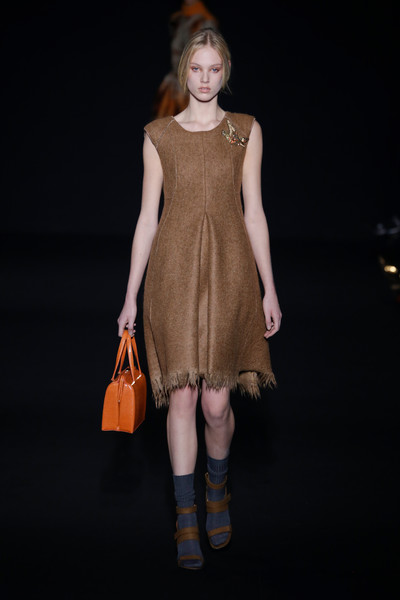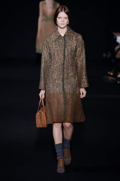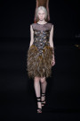 It was clear that Alberta Ferretti got her inspiration from the woods and birds. The result was far from magcical and arty, it got a depth and sobriety via heavy textures and embellishments. Feathers were a key component of the collection — as a print; as an illusory mélange of pleated ribbon; and as a real detail.