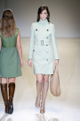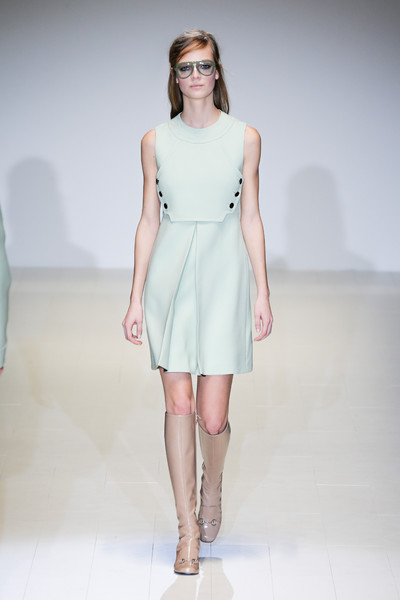 Dresses and belted coats retained the clean shapes while expressing the more feminine side of the Gucci range.