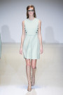 For evening Giannini offered a series of short, structured dresses including several in leather their bodices decorated with bold encrustations of crystals.