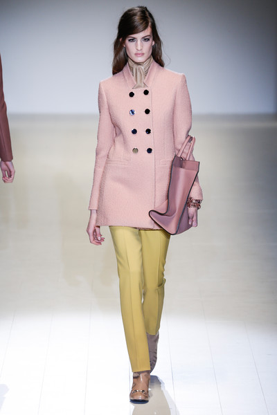 It was a smart Gucci-collection Frida Giannini presented at the start of Milan Fashion Week. Plain and simple, functional chic with a dash of glamor. The FW14 collection seems rooted in sportswear infused with a Sixties vibe: crisp, precise shapes softened with a palette of pastels — pinks and beiges; dusty blues and greens. The tailoring for jackets and pants were lean and mannish.