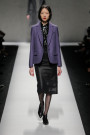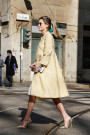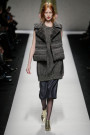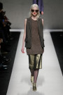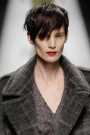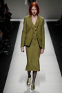 Inspired by Scotland Max Mara came up with a luxurious collection this week. Full of rich materials with lots of texture the brand focused on it’s strongest asset; outerwear. With a wide range of classy coats (from woolen and tweed to quilted and leather) to choose from, the Max Mara women won’t be cold next winter. They were worn with pencil skirts (over the knee, mid calf), paired with sleeveless woolen tops, designs with PVC details and crocodile printed gold creations (even shoes!). Not tucked in, but worn to their full length, far below the waist. The designs may have been classic; the careless appeal of the models (hair undone, hardly any make-up, yet bright red lips) made them look young and fresh. As fresh as the collection’s lichen green, which already has us in deep thoughts figuring out with what tone to match it.