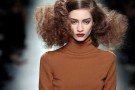 Tomas Maier’s Bottega collection today wouldn’t strike you as showstopping or mind blowing by taking a quick look. For the show attendees in the sixth row the designs probably just appeared as beautiful creations and we’re sure even the front rowers wouldn’t have been able to see what the clothes were all about. Yes the dresses looked well made and chic, but there was a whole lot more going on. Tomas experimented with fabric construction and chose wool as his main material. “I was into wool, and using it in different ways, washing it, bonding it, or felting it to create print”, he stated backstage. He managed to make wool look sexy and used it to create structured shoulders, 3D peplum details and ruffled skirt pleats. Fabrics were embroidered in order to create several trompe l’oeil prints. In between his see of fully black dresses touches of color (red, beige, yellow) made a good match with the models’ seventies appearances. Lots of attention to detail on designs that definitely deserve a closer look.