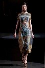 Today’s Just Cavalli show was filled with the most beautiful ethnic prints. Inspired by Roberto and Eva Cavalli’s trip to Bhutan they covered plants and special buildings. They appeared on completely printed looks; blouses, pants, ultra short dresses and even evening gowns.