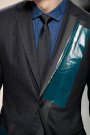 Tomas Maier of Bottega Veneta likes experiencing with materials, colors and effects. Well, the lean pristine suits he sent out this morning with optical effects in geometric color blocking were sure new and daring. But the effect was not always working out well. Later on the collection took a more cool and rock ‘n roll turn with knits and outerwear, like biker jackets and coats with graphic black rubber details.