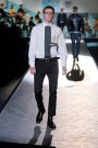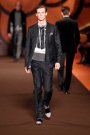 High School was the setting at the DSquared show and the model acted like little schoolboys, smoking on the runway and throwing paper planes at teacher. A retro classroom was set at the end of the runway. The models tried to behave like rebels, but the collection was far from that. Just DSquared-clothes: distressed, low-rise denim, fitted biker jackets and college-style shirts. But a great theme to play with. And there were actually some great outfits and garments, like the mohair & angora Fair Isle sweaters, a nice tweed car coat and some fitted suits.