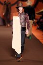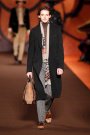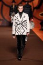 Etro designer Kean Etro couldn’t get enough of feathers for his FW2012-collection. Feather-prints, real fathers, at shoes, vests, blazers and tailcoats. It gave all the formal and evening looks a fancy edge, but it didn’t lead to a strong collection. Of course there was the usual velvet, the fitted suit and the usual dark colors plus red and orange, which made the collection fit in the trend of romance & decadence.