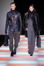 High School was the setting at the DSquared show and the model acted like little schoolboys, smoking on the runway and throwing paper planes at teacher. A retro classroom was set at the end of the runway. The models tried to behave like rebels, but the collection was far from that. Just DSquared-clothes: distressed, low-rise denim, fitted biker jackets and college-style shirts. But a great theme to play with. And there were actually some great outfits and garments, like the mohair & angora Fair Isle sweaters, a nice tweed car coat and some fitted suits.