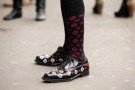 But when look #12 came on it was clear the leopard was a bigger theme for Christopher Bailey’s I Heart Classics collection. A zebra printed collar on one of the coats was followed by fully leopard and zebra printed patent leather jackets. Bailey teamed up his wild side with some looks in army green and then went on the spread the love. Literally by introducing a heart shaped print on several shirts, sweaters and one of the short scarves.
