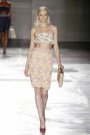 Blugirl goes innocent, with sweet florals in pretty pastels, where Fendi adds a touch of concealed drama in ladylike looks. Fabrics as well as shapes have pin up appeal; lovely lace tops, frilled aprons and pretty plisse skirts. Adding to the lust for print, as we noticed in New York, Milan shows Fifties inspired patterns in the loveliest of colour schemes.