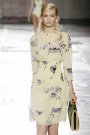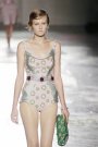 Celebrating the sweet is what Miucca Prada preaches for ss2012. Reminiscent of famous movie-moments these catwalk beauties look soft, smooth and sensual. This polished romance is not always just innocent since frivolous fabrics alternate with shimmery plastics and lush leather. Dressed up looks show a continuous interest in accessories and jewelry with supersized glasses, sparkling jewelry and charming bags.