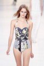 There were floral prints in every variation you could think of. They came by on tops, floor-sweeping dresses, jumpsuits, overalls and shorts, alternated by red and white picnic cloth checks and some images of Disney’s Snow White.