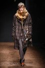 The color palette was a banquet of soothing neutrals. For all the designer’s insistence on cut, it was softness that dominated. A hooded mink coat and a Mongolian lamb backpack were its most extreme manifestations. Otherwise, jacquard-ed blousons and parkas had the comfy look and feel of blankets. The body-conscious cashmere knitwear in long cabled cardigans and even longer rib-knit tops, layered over leggings was lean and athletic. It took on an impressive masculine heft with oversized outerwear.