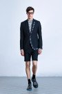 School-uniforms and a bad school-boy where the theme behind the Monsieur-collection of Viktor & Rolf. The result was a streamlined and boyish collection with a new suit shape, pairing a cropped jacket with skinny trousers or shorts. The school-boy theme was also visible in the patches on black jeans, the jersey blazer with blue nylon stripes inspired by college scarves and the bomber-jacket.