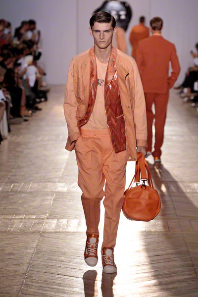 The silhouettes are a combination of summer tailoring layered with light, easy pieces. Colorful tunics peak out through the range and have a relaxed summer fit. A house classic trench in terracotta is lightweight and unexpectedly lined with the signature spectacles-print, an iconic print for Monsieur.