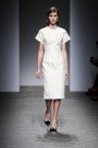 That was quite a style-icon Alessandro dell’ Aqua took as an inspiration for his fall-collection: Queen Elizabeth. Especially how the queen dresses in her private life. The designer played with a masculine-feminine theme, using mannish fabrics like tweed, which he softened with ultrafeminine details. These looks included a tweed minidress with an organza overlay and an apronlike dress in the same fabric with a subtle lace hem, or a macramé top tucked into a jeweled skirt.