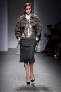 First we met with her college girls, dressed red, blue and green in argyle sweaters and toggle coats. Then Anna introduced her pastel pretties, in fur light colored looks, topped off by pastel shades earmuffs. The third group of models were Blugirl’s Snowbunnies in fully white and off white outfits which had a shiny detail here and there. And models in party dresses (black from head to toe) closed the show.