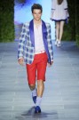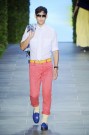 The fellows promoted double breasted jackets, eye-catching ties, colorful socks and loafers. They wore checked pants too, which were actually the most outspoken pieces of the show.