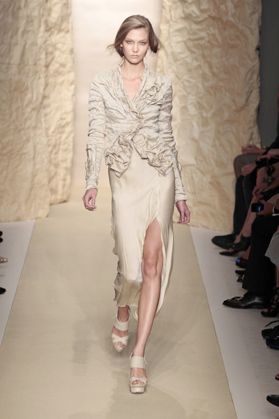 You can leave it to Donna Karan to make a theme like ‘Raw Romance’ into a beautiful, strong collection in just one color (sand) and a contrasting mix of crumpled jackets and sensual dresses and skirts.