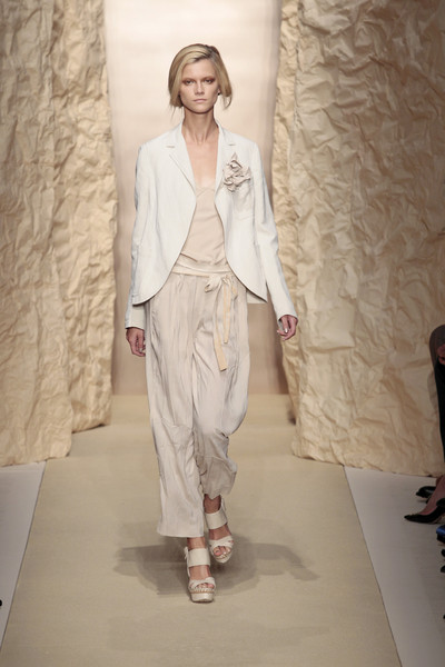 Donna Karan obviously went for a commercial collection this time. All of her design, in shades of turquoise, beige and pink, seemed wearable and will be easy to mix and match into any woman’s wardrobe.