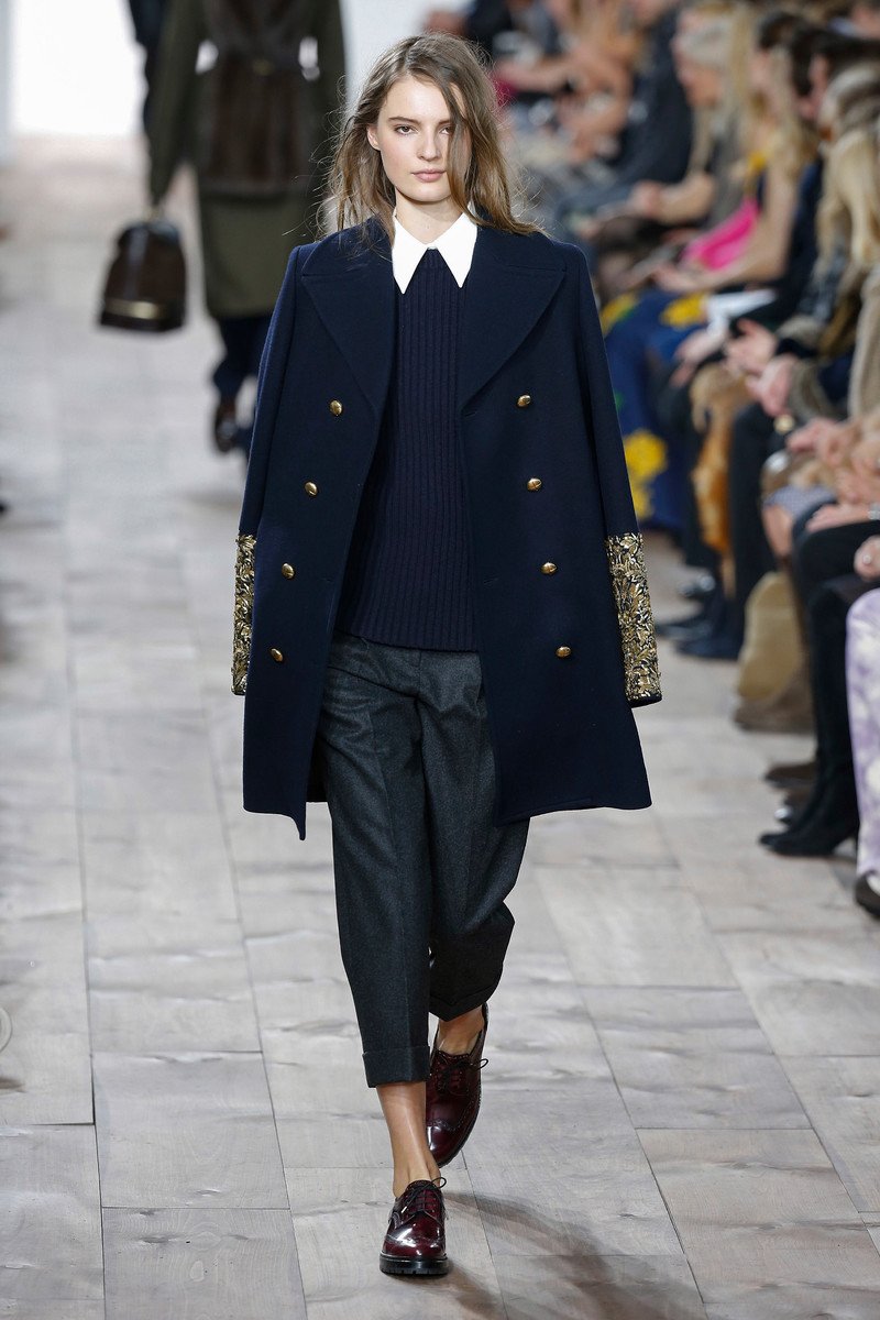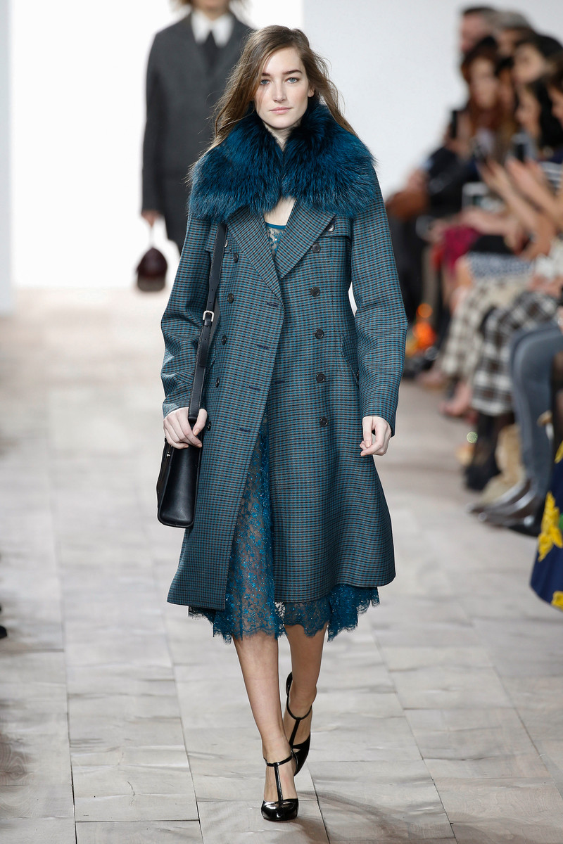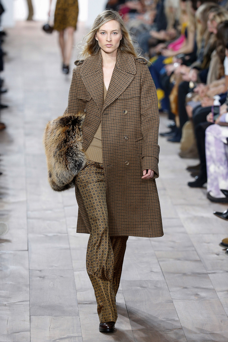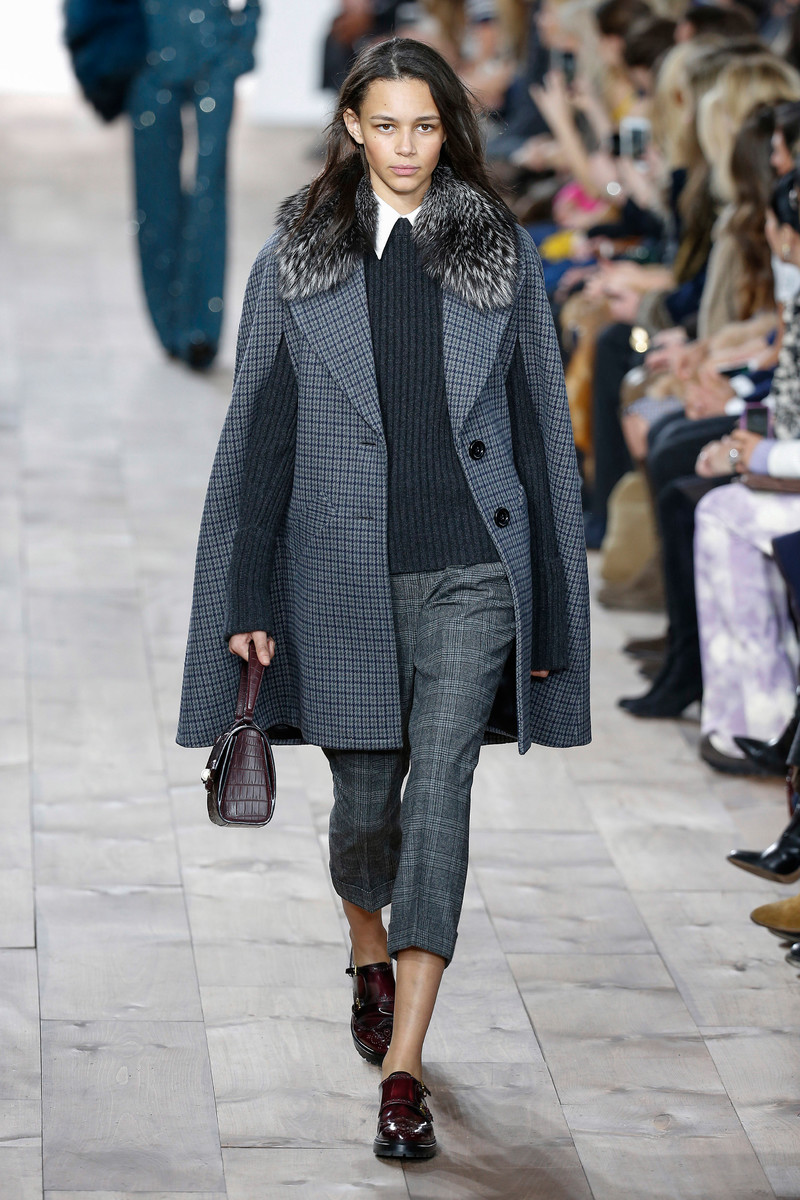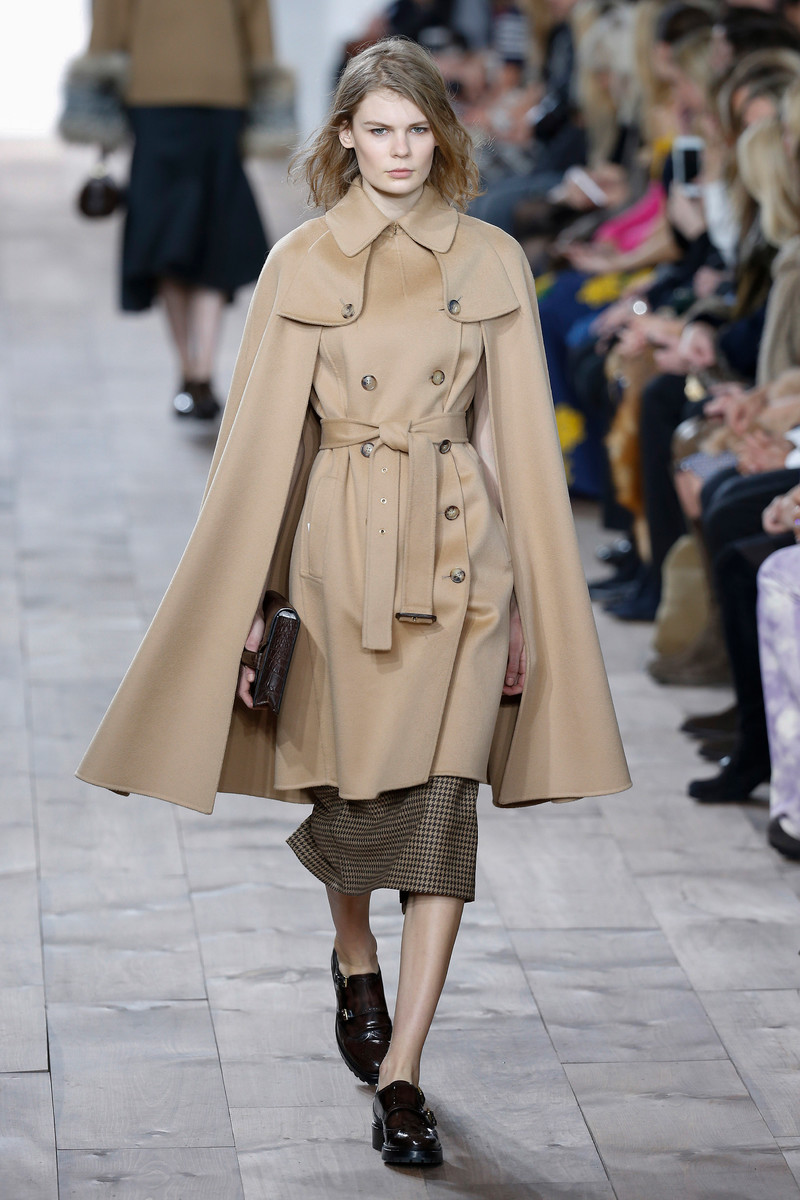 Kors’ fall collection was runway reality at its most alluring. He showed both languid and tailored, the former in pretty bias dresses and sweater dressing; the latter working that gender yin-yang crossover — tweeds, trousers, crisp shirts and especially the outerwear, including a trench-cape hybrid worthy of an ultrachic Sherlock. In the opulent column, Kors’ fabrics were luxe, but often quietly so — the tony cashmeres and wools, the silk foulards.