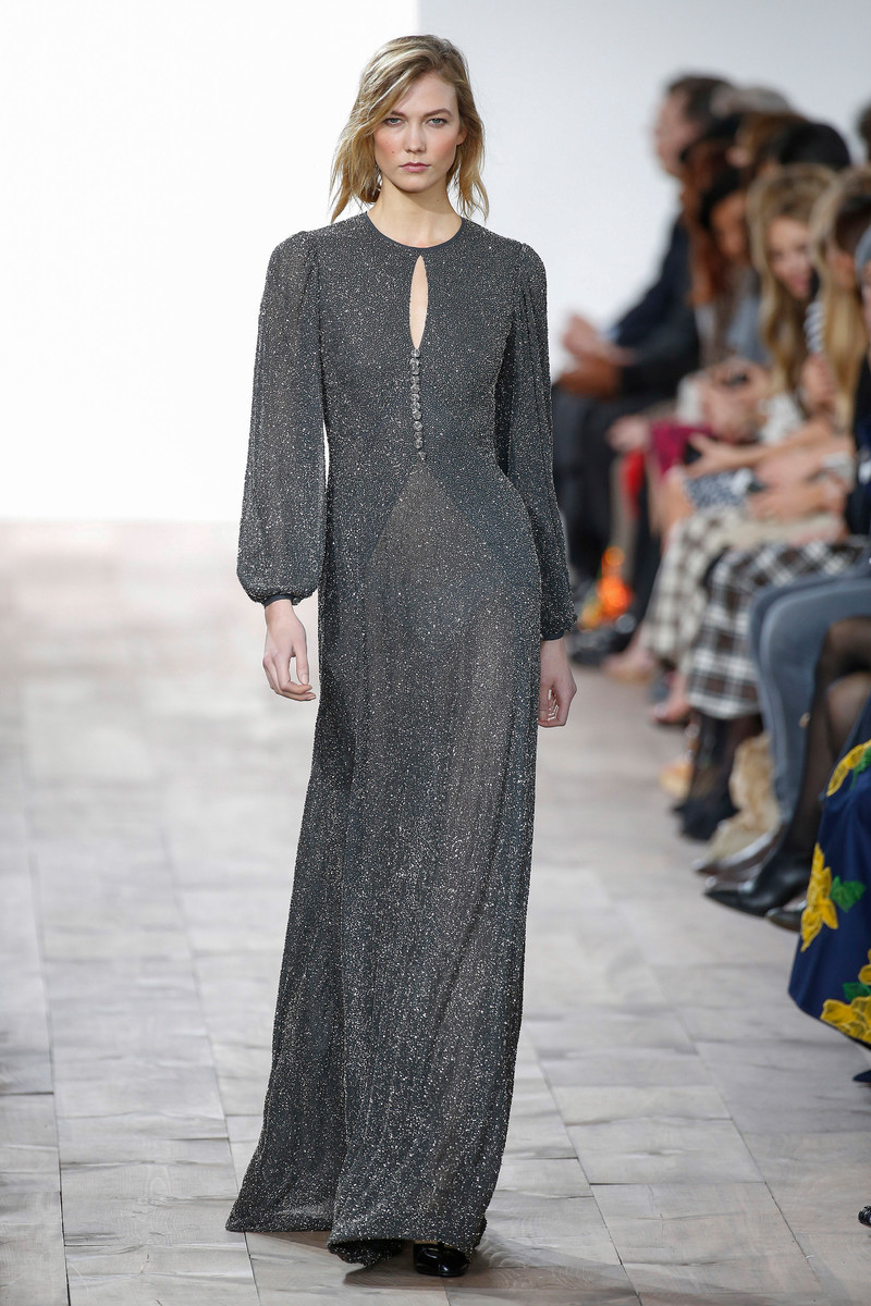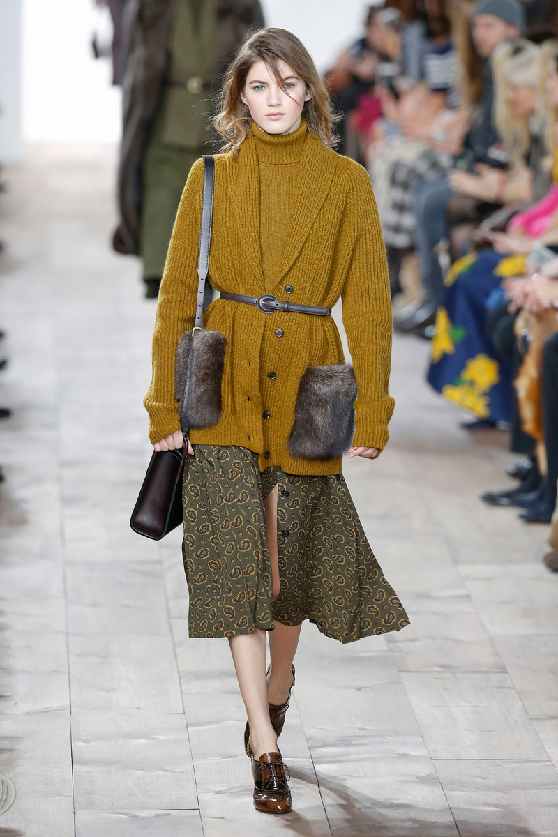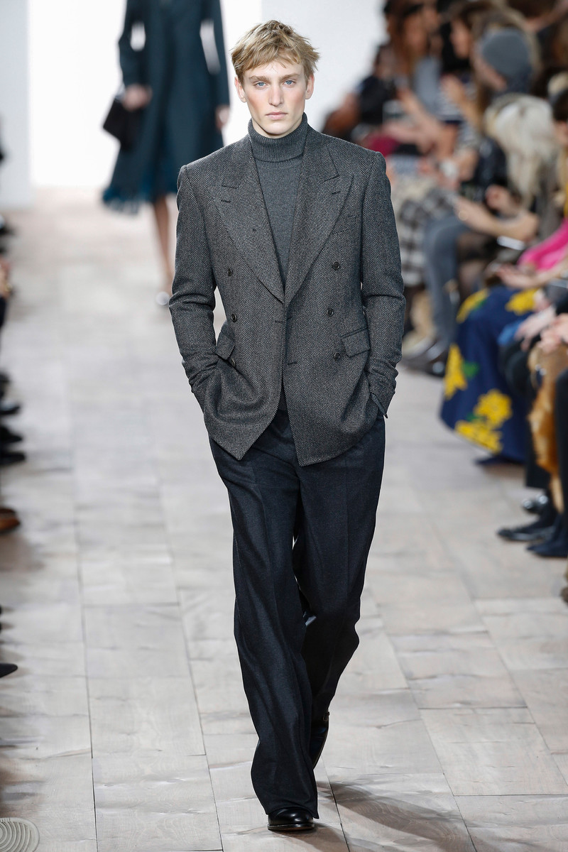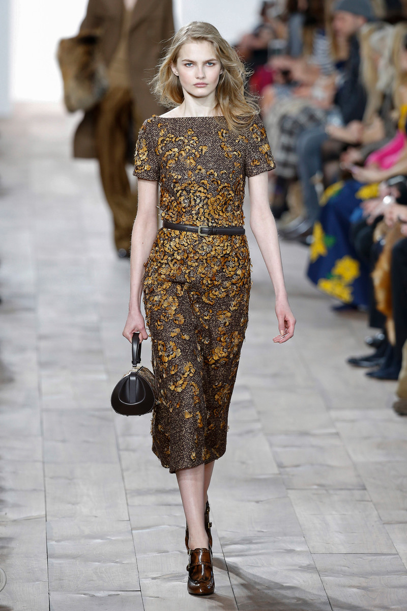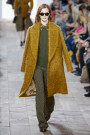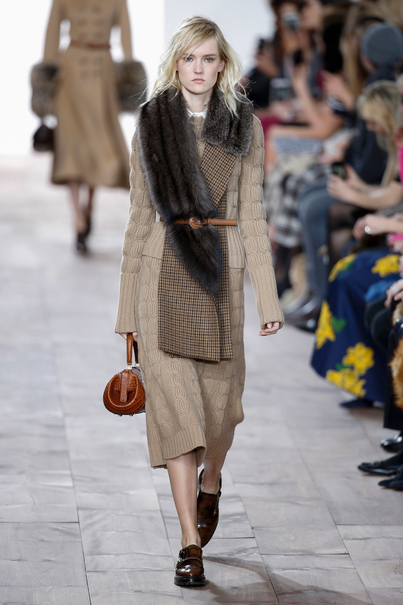 Kors’ fall collection was runway reality at its most alluring. He showed both languid and tailored, the former in pretty bias dresses and sweater dressing; the latter working that gender yin-yang crossover — tweeds, trousers, crisp shirts and especially the outerwear, including a trench-cape hybrid worthy of an ultrachic Sherlock. In the opulent column, Kors’ fabrics were luxe, but often quietly so — the tony cashmeres and wools, the silk foulards.