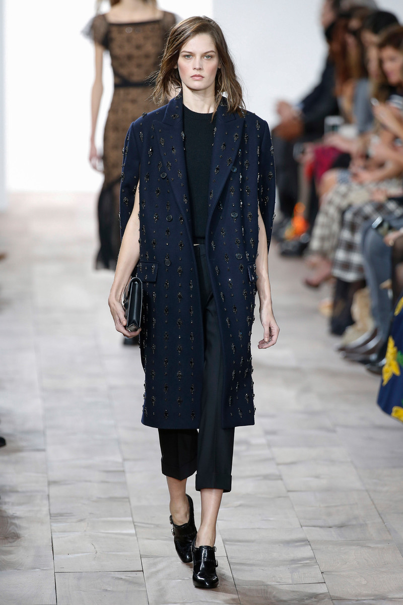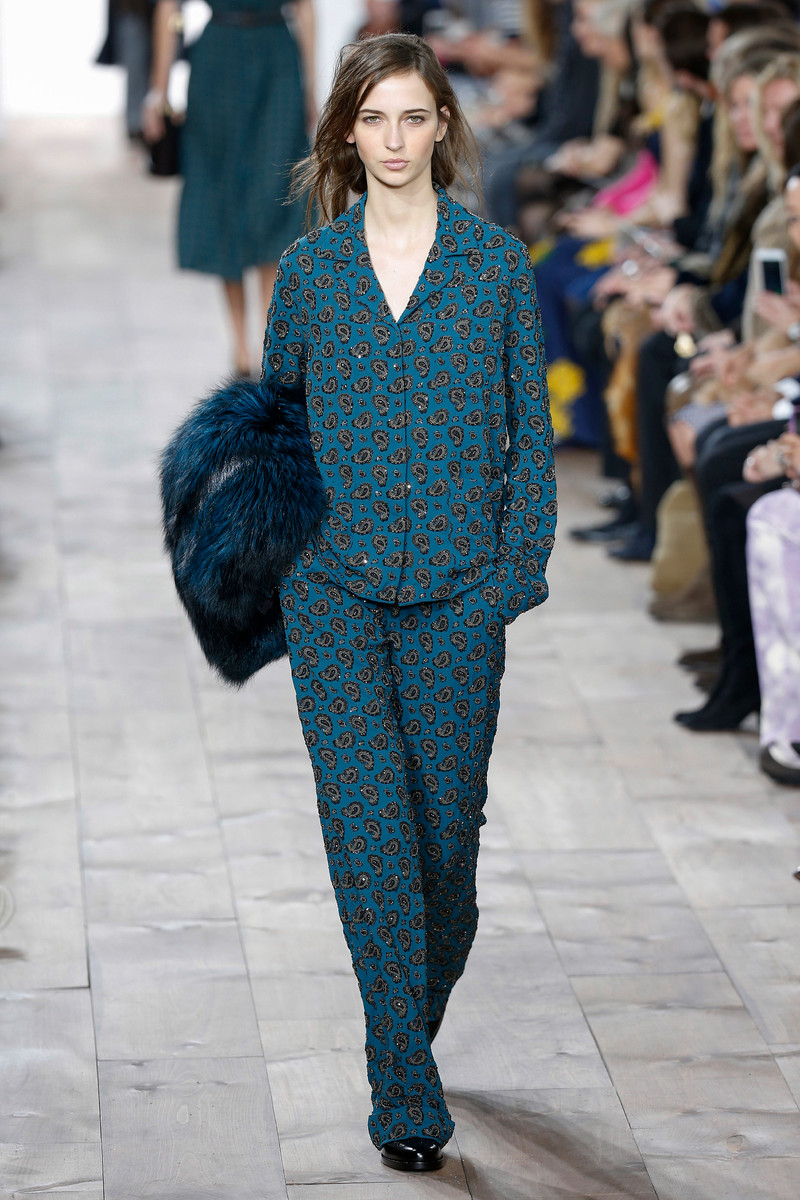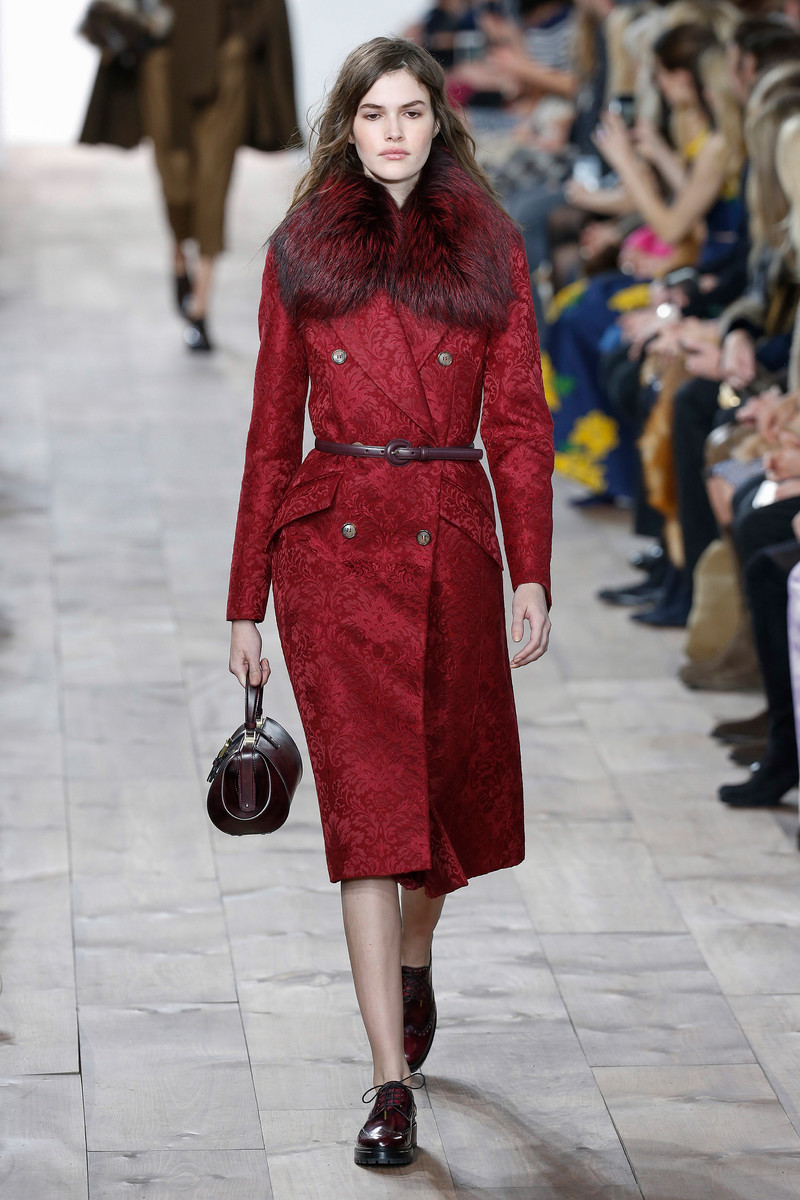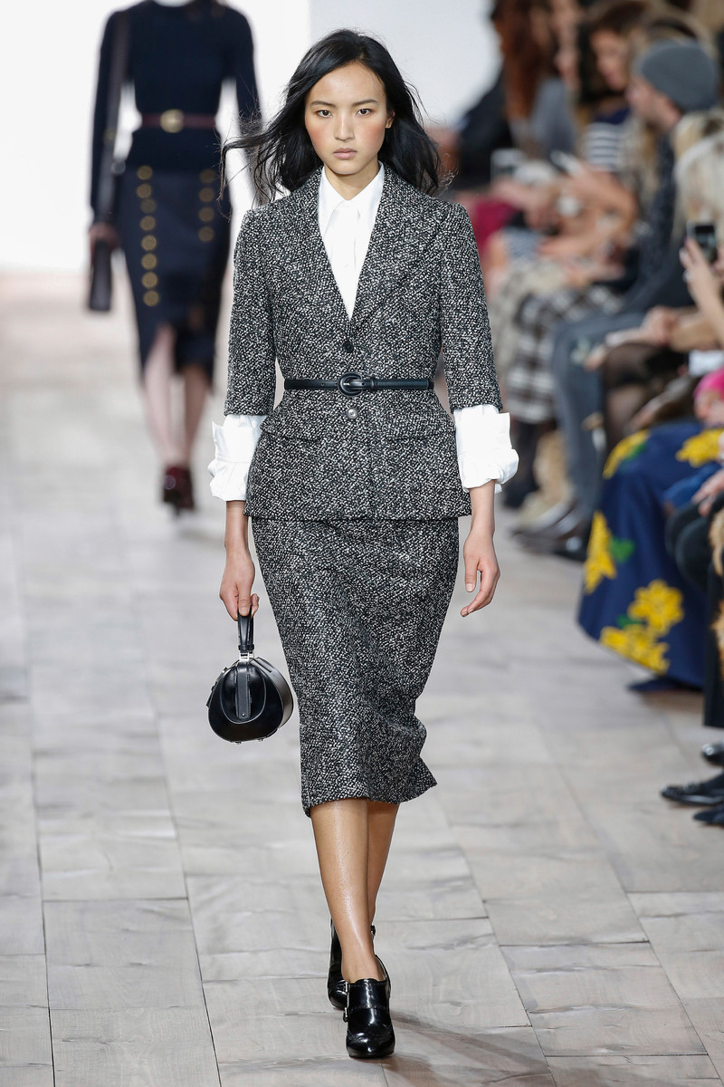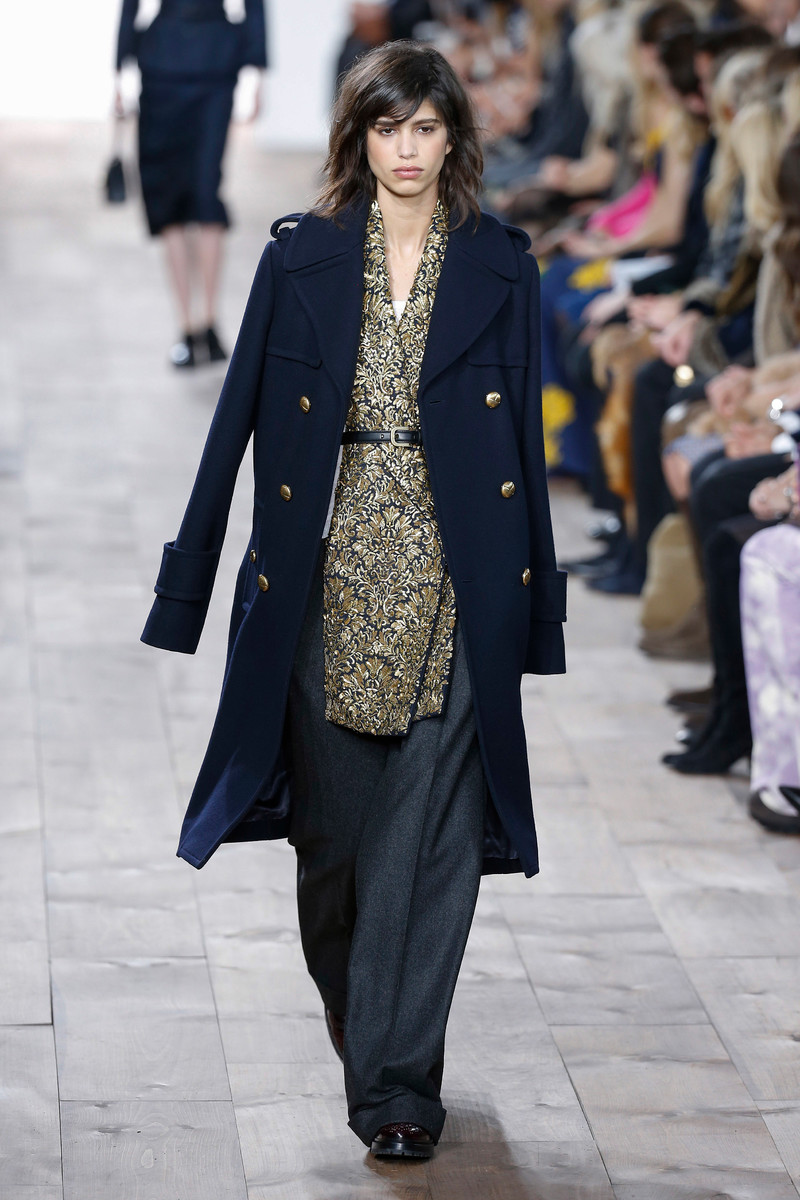 Opulent restraint, that was the theme of Michael Kors fall 2015 collection. A very American idea referring to Wallace Simpson, Carolyn Bessette Kennedy. All of these women understood how to play with the yin and the yang.