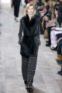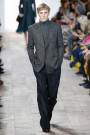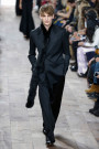 All of those elements would recur, becoming more extreme in a fabulous display of fashion. The dominant silhouette was lean through the torso, releasing into more volume starting with the powerful lineup of coats and jackets in spotted calf, boiled felt inspired by the splayed felt work of Robert Morris. The fabrics were major, from the array of tweeds to various needle-punched treatments, including a black and red chiffon crepe that created a mottled, aged effect.